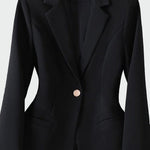 Vječni sako s elegantnim krojem koji ističe ženstvenost i stil. Jedno dugme sprijeda dodaje suptilnost, dok čiste linije džepova pojačavaju minimalistički karakter. Idealno za poslovne prilike, ali i za elegantne večernje izlaske.