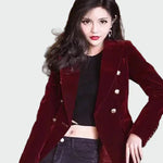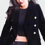 Elegantni sako u bezvremenskom kroju s dvostrukim kopčanjem koji ističe siluetu. Njegova struktura pruža profesionalan i sofisticiran karakter, a može se lako nositi u svakodnevnim ili večernjim prilikama. Minimalistički dizajn ga čini osnovnim komadom za svaku garderobu.