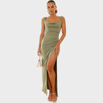 Ova duga haljina donosi savršen spoj sofisticiranosti i senzualnosti. Zahvaljujući ženstvenom kroju, pripijenoj silueti i atraktivnom prorezu, naglašava figuru i osigurava da budete u centru pažnje na svakoj posebnoj prilici. Idealna je za večernje izlaske, svečanosti ili romantične trenutke.