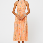 Elegantna i lagana haljina s impresivnim vezanjem oko vrata i romantičnim ugođajem. Pojas u struku ističe siluetu, dok zračna suknja s nabranim detaljima donosi pokret i sofisticiranost. Idealna za vjenčanja, ljetne događaje ili večeri pune stila.
