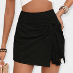 Elegantni i ženstveni, ovi šortsi-suknja s visokim strukom i diskretnim vezanjem sprijeda ističu siluetu s potpunom finoćom. Idealni za ljetne prilike, kombiniraju udobnost i stil u svakoj situaciji.