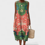 Ova lagana i prozračna haljina savršeno kombinira stil i praktičnost, dajući vam slobodu kretanja i sofisticiran izgled u svim prigodama. Njezin opušteni kroj i cvjetni uzorak čine je idealnim izborom za plažu, šetnju gradom ili ljetne susrete.