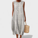 Ova lagana i prozračna haljina savršeno kombinira stil i praktičnost, dajući vam slobodu kretanja i sofisticiran izgled u svim prigodama. Njezin opušteni kroj i cvjetni uzorak čine je idealnim izborom za plažu, šetnju gradom ili ljetne susrete.
