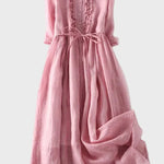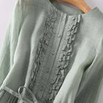 Ova jednostavna i elegantna duga haljina u nježnoj zelenoj nijansi isijava svježinu i prirodnu eleganciju. S laganom siluetom i opuštenim krojem, nježno obavija tijelo i pruža jedinstvenu udobnost u svakom trenutku dana.