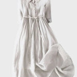 Ova nježna plava haljina isijava mirnoću i eleganciju, idealna za svaku priliku. Njezina jednostavna linija pruža udobnost i bezvremenski stil, dok pojas u struku daje ženstvenu siluetu s prirodnim padom tkanine.