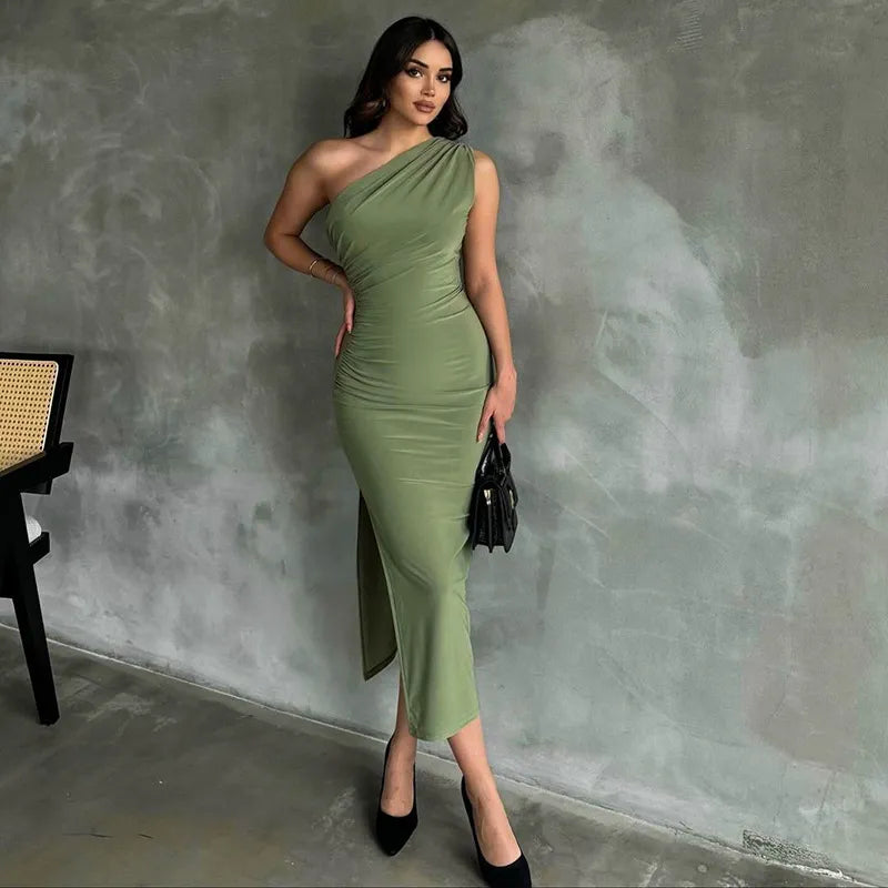 Unaprijedite svoju garderobu s našom zadivljujućom satenskom haljinom do gležnjeva koja daje trenutni stil svakoj prilici. Savršena za zabave ili odmor, ovaj elegantni bezrukavni dizajn ima moderan nabrani izrez i praktičan patentni zatvarač na leđima za jednostavno oblačenje i skidanje.