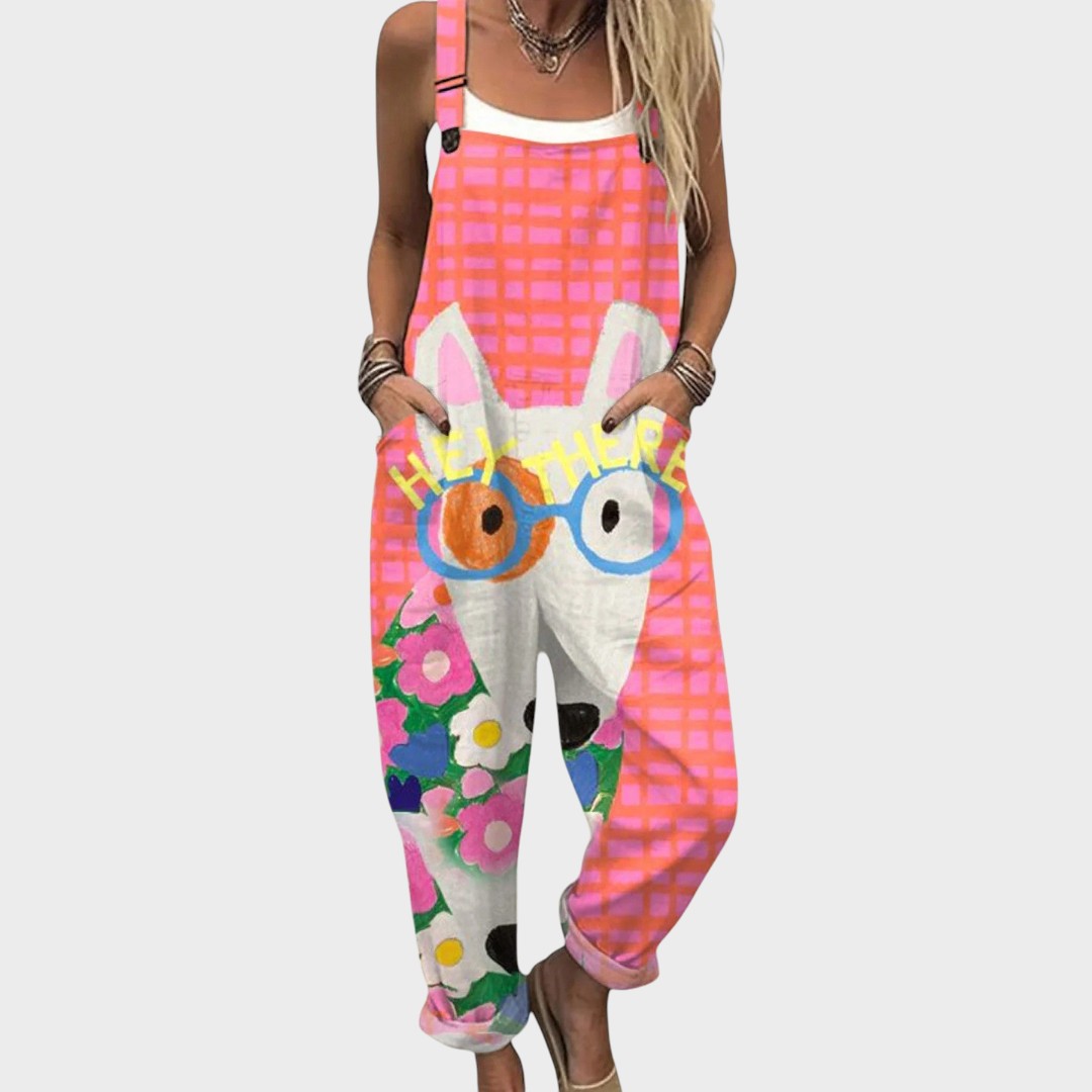 Ovaj ležerni kombinezon spaja udobnost i jedinstven dizajn u komad odjeće koji ćete obožavati nositi svaki dan. Sa širokim krojem, praktičnim džepovima i razigranim detaljima, savršen je za šetnje, izlete ili opuštene trenutke kod kuće.