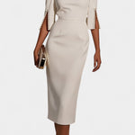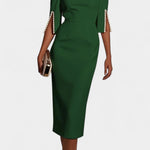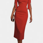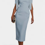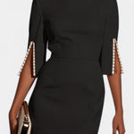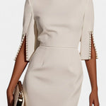 Vesna Midi Haljina s Bisernim Detaljima i Okruglim Izrezom