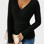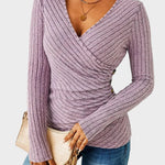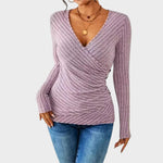 Ova majica dugih rukava idealan je izbor za one koji traže savršen balans između stila i udobnosti. Preklopni dizajn prirodno naglašava siluetu, stvarajući suptilan i profinjen oblikujući efekt. Svestrana i ženstvena, lako se prilagođava različitim prigodama – od svakodnevnih kombinacija do posebnih izlazaka – uvijek osiguravajući moderan i dotjeran izgled.