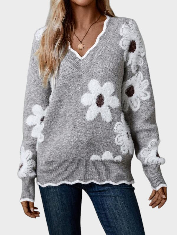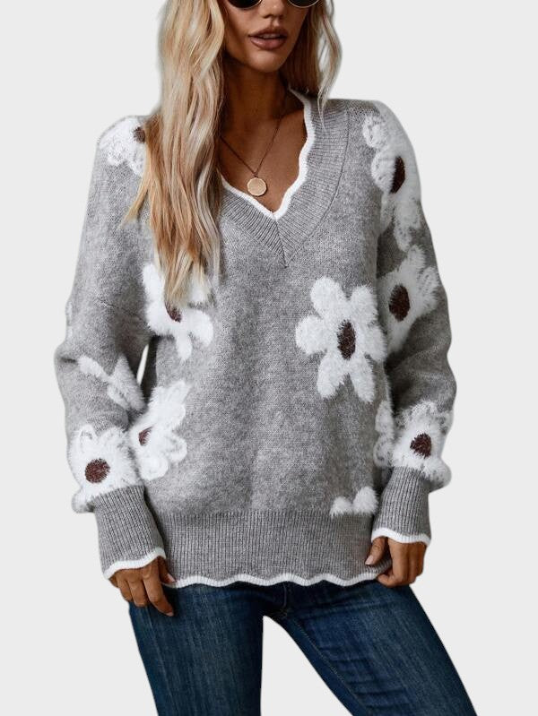 Renata ™ | Elegantni džemper s V-izrezom i cvjetnim uzorkom