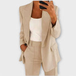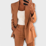 Christina™ ženski odjevni komplet izrađen je od visokokvalitetnih materijala i pruža savršen spoj udobnosti i sofisticiranog stila. Klasičan kroj sa sakoom i hlačama osigurava elegantan izgled koji se lako prilagođava poslovnim, svečanim i svakodnevnim prigodama.