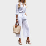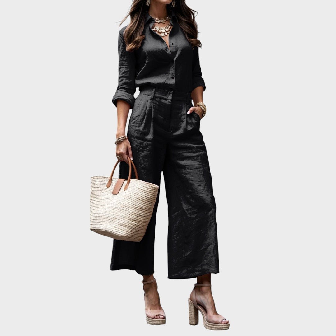 Set Jelena donosi savršenu ravnotežu između udobnosti i sofisticiranog izgleda. Capri hlače daju ležernost i slobodu pokreta, dok lanena košulja osigurava da uvijek izgledate dotjerano, čak i u opuštenim situacijama. Idealna kombinacija za šetnje gradom, kavu s prijateljima ili poslovne susrete gdje želite zračiti nenametljivim stilom.