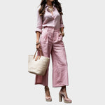 Jelena ™ | Ružičaste Capri hlače i labava košulja od lana