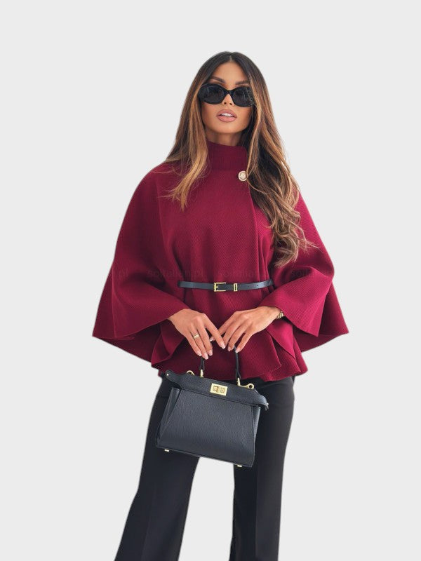 Ovaj kaput u stilu cape savršeno spaja moderan izgled i klasičnu profinjenost. Lepršav kroj daje lakoću i pokret, dok remen naglašava siluetu ženstvenim dodirom. Svestran komad koji trenutačno pretvara svaki outfit u nešto posebno i elegantno.