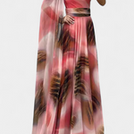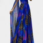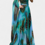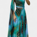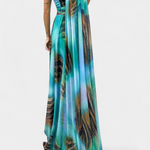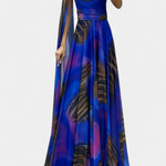 Romantična i sofisticirana, haljina Nives unosi skulpturalni i ženstveni duh zahvaljujući izrezu s jednim ramenom i drapiranoj rukavi. Delikatni cvjetni aplikacija podiže dizajn, dok se maxi silueta fluidno kreće s gracioznošću, stvarajući nezaboravnu prisutnost na bilo kojem događaju. Izrađena od mekog i elegantnog materijala, balansira udobnost s rafiniranim glamuroznošću.